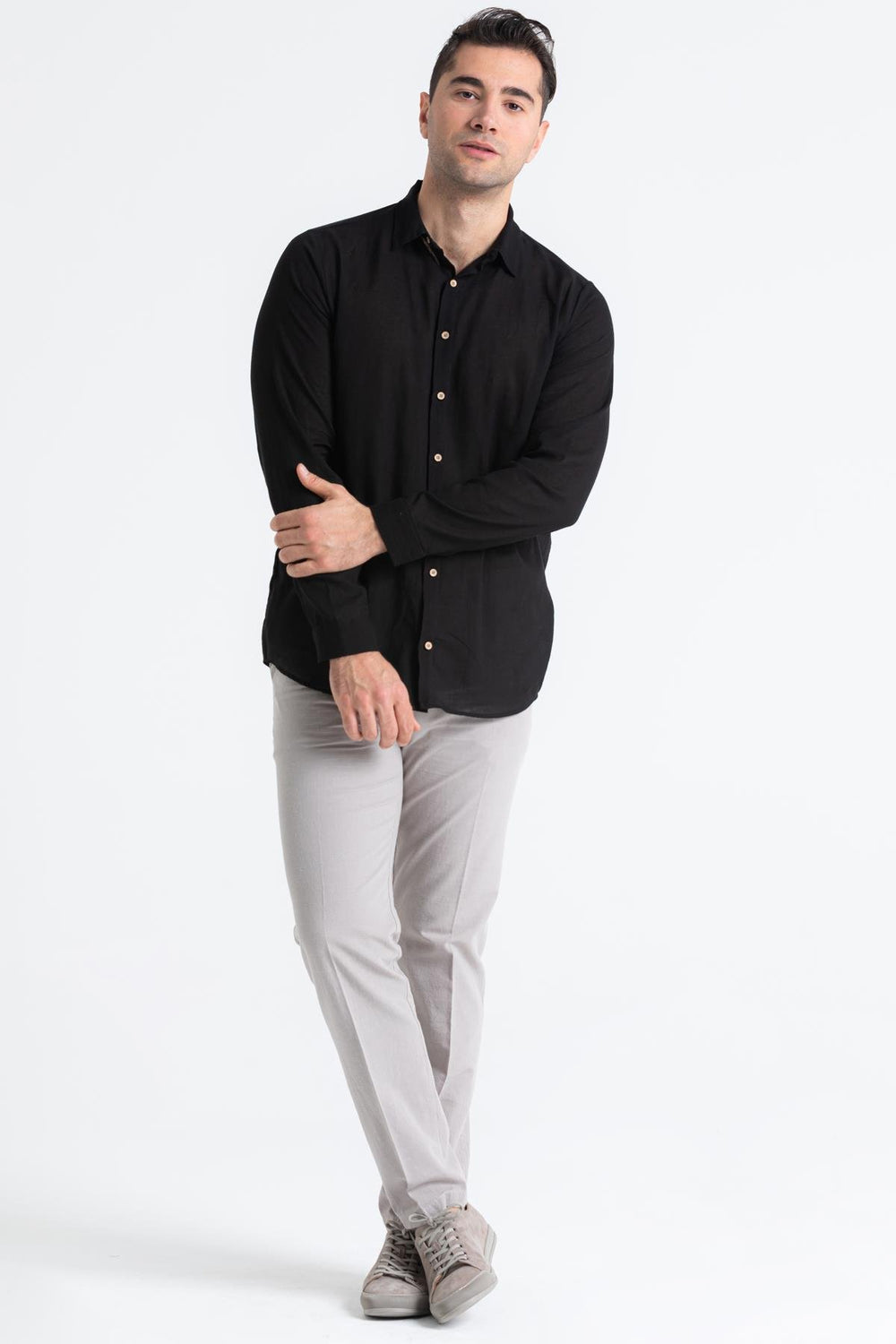 Men - Black Poplin Long Sleeve Shirt