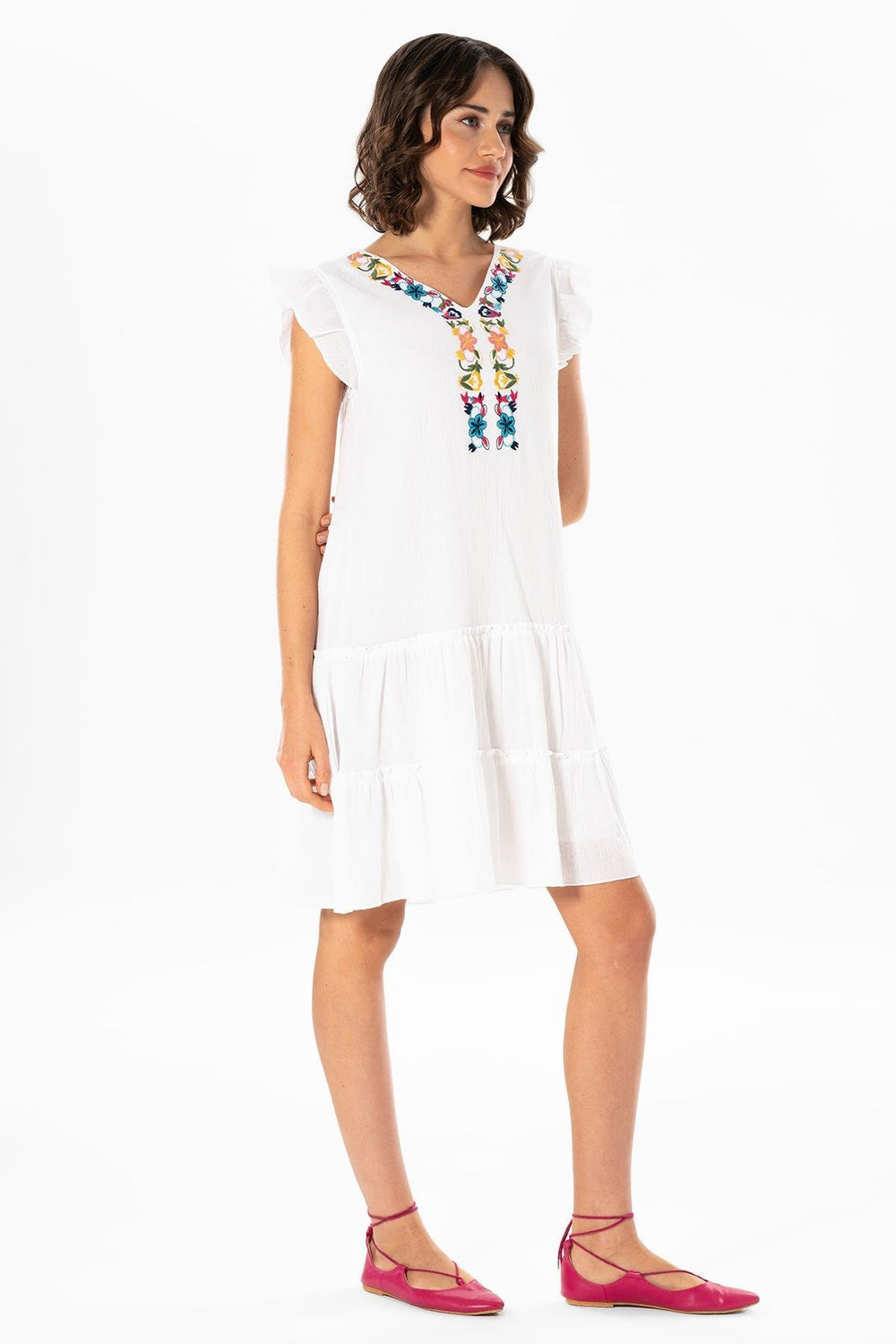 Expertly crafted from lightweight cotton, the Sophia Dress is the perfect piece for your summer wardrobe. Its breathable fabric ensures maximum comfort, while its timeless design makes it versatile for any occasion. Stay cool and stylish all season long with this must-have dress.