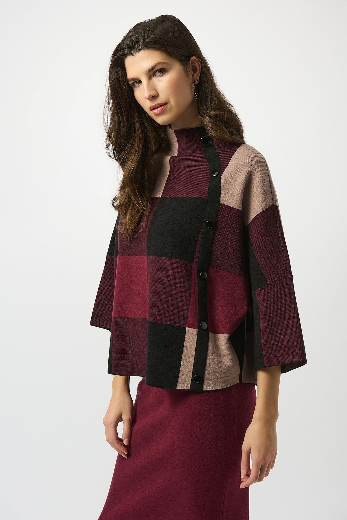 Plaid Jacquard Sweater Knit Top - Joseph Ribkoff