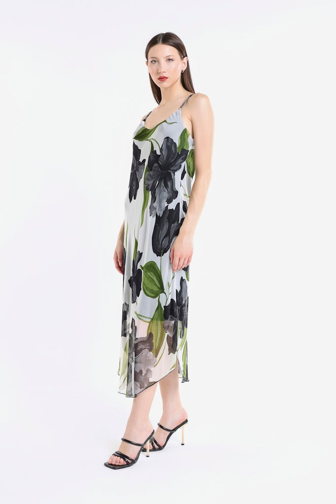 Rachel Iris Print Silk Midi Dress - Black - Tees By Tina