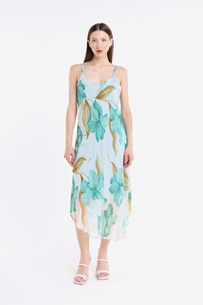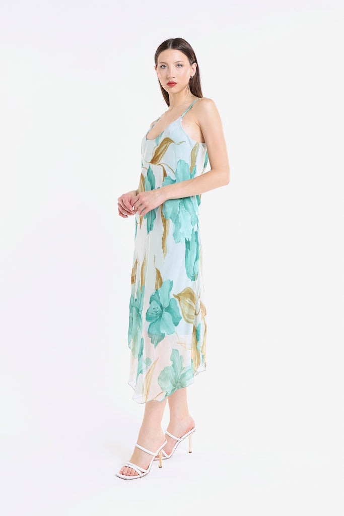 Rachel Iris Print Silk Midi Dress - Turquoise - Tees By Tina