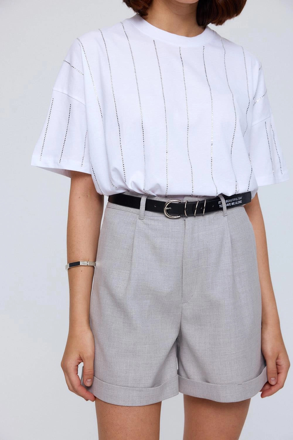 These Bermuda grey shorts come with a belted waist for a comfortable, customizable fit. Featuring a classic and versatile grey color, these shorts are perfect for any summer outfit. The sleek design and durable fabric ensure long-lasting wear. Elevate your wardrobe with these stylish and functional shorts.