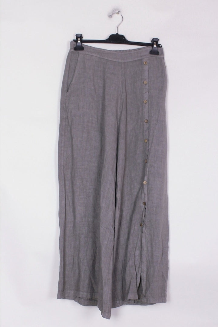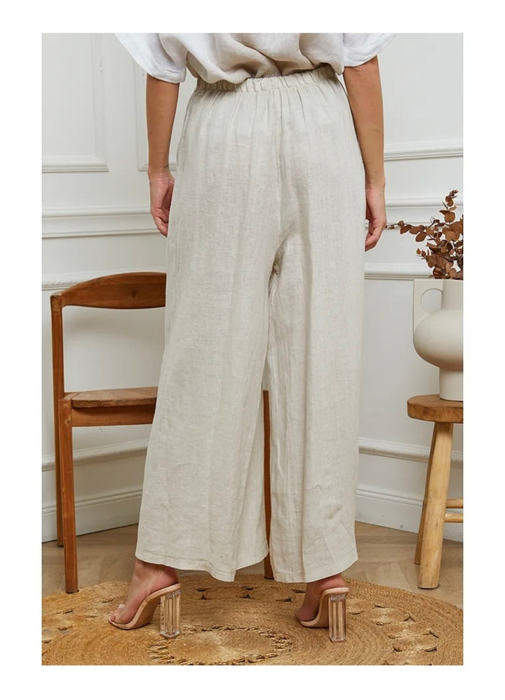 Crafted from pure linen and made in Italy, these Button Detail Linen Pants offer breathable comfort with a refined silhouette. The subtle button accents add a touch of elegance, making them perfect for sophisticated, warm-weather dressing.