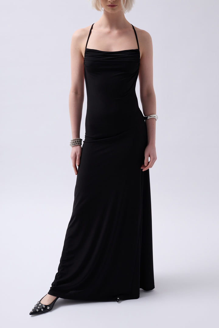 Claudia Tie Up Detail Dangle Collar Maxi Dress - Black