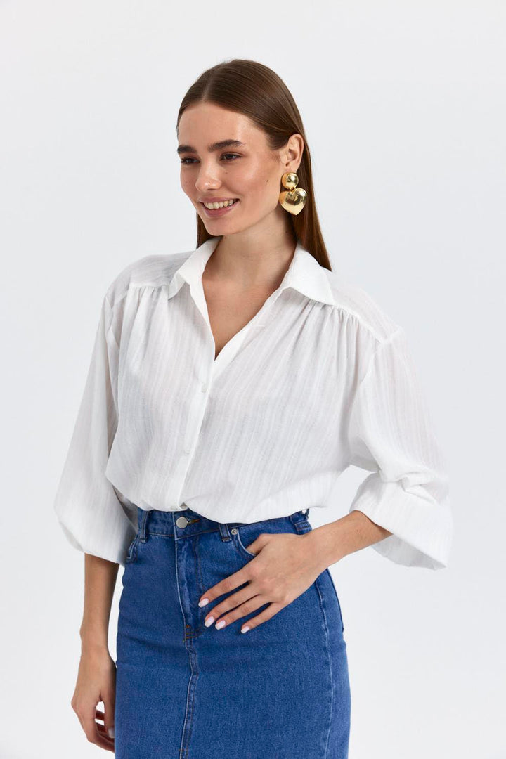 Effortlessly stylish and versatile, our V-Neck Long Sleeve Women's Shirt in white is a must-have staple for any wardrobe. Made with high-quality materials, this shirt is designed to provide a comfortable and flattering fit. Perfect for both casual and professional settings, this shirt is a timeless addition to your collection.