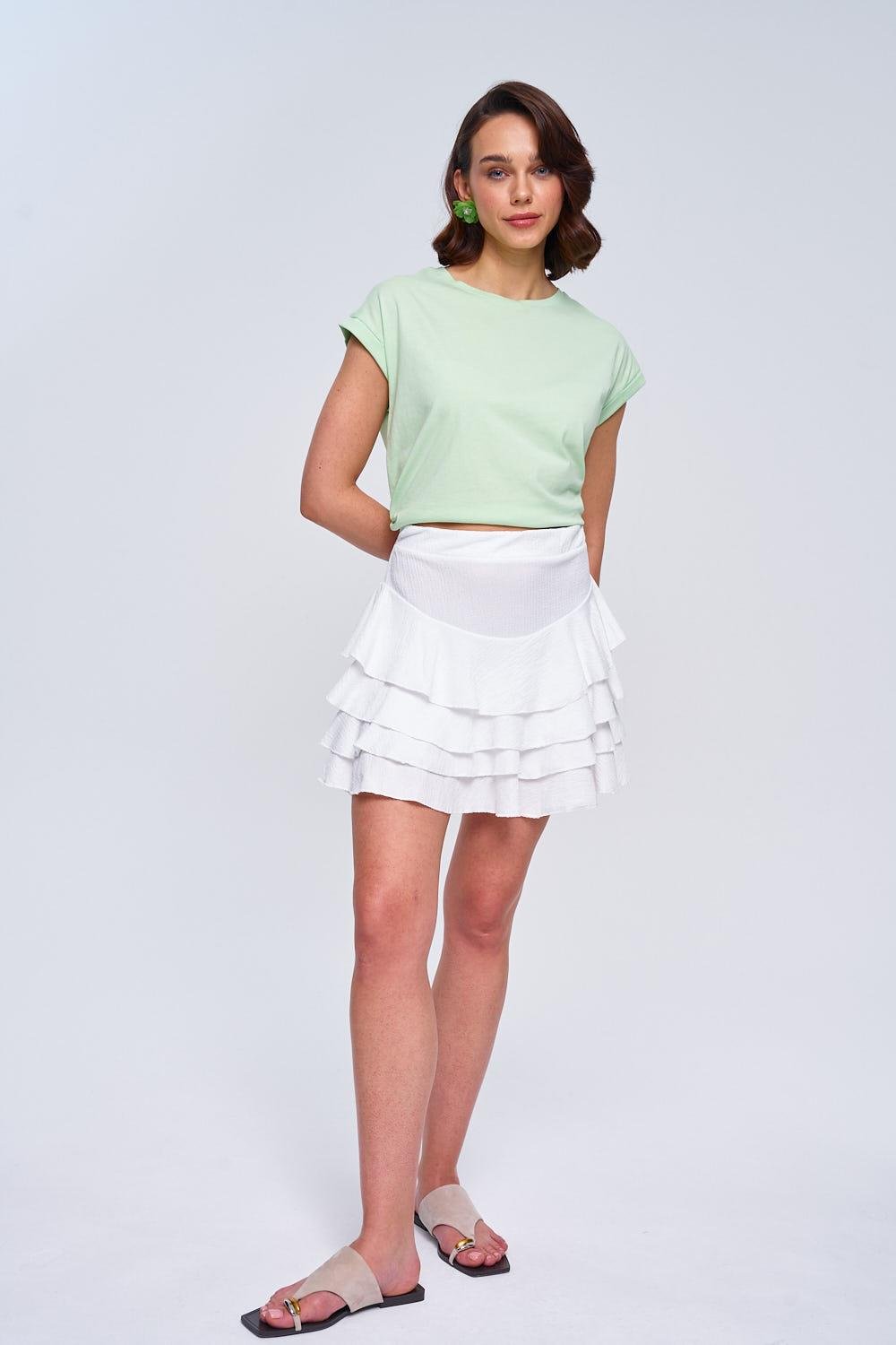 This White Mini Ruffle Skirt is both sophisticated and flirty. The crisp white color adds a touch of elegance while the ruffled design brings a playful charm. Made from high-quality materials, this skirt is comfortable and durable for all-day wear. Perfect for dressing up or down, it's a versatile addition to any wardrobe.